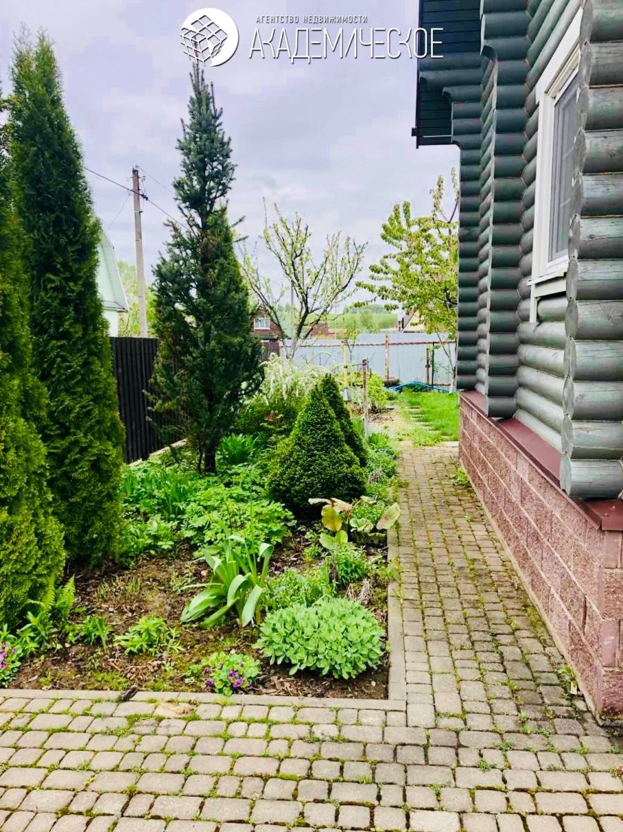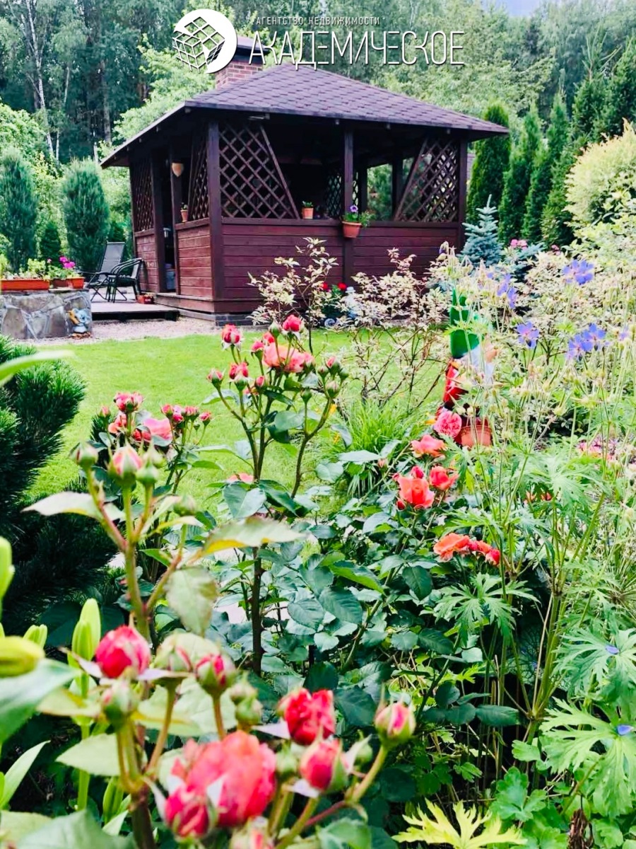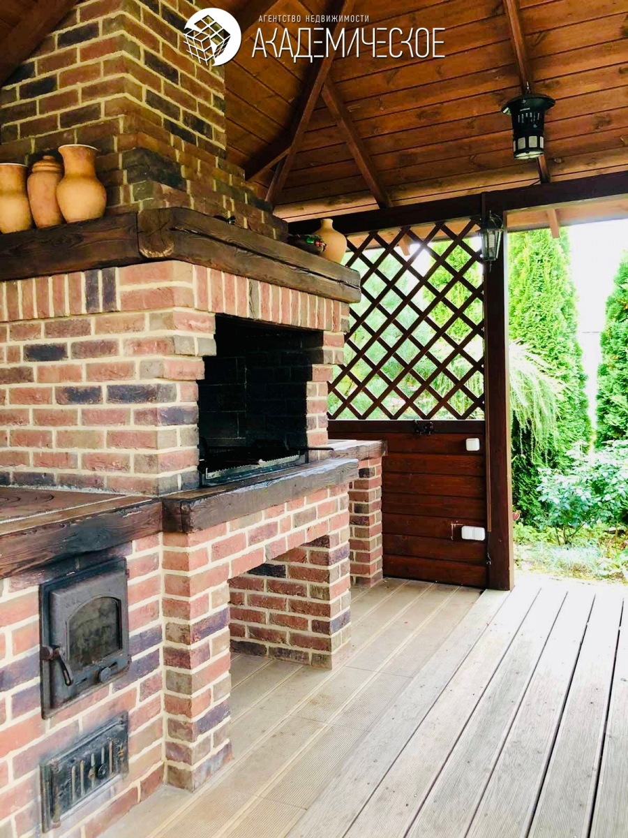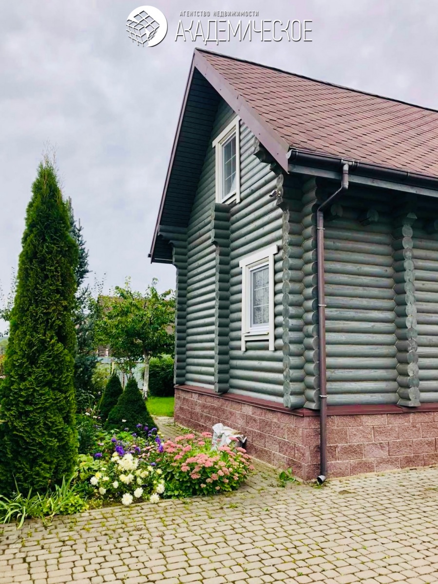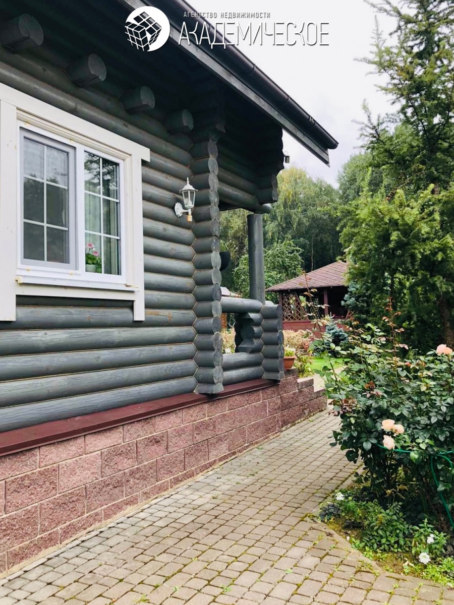 Дом деревянный из оцилиндрованного бревна с открытой лоджией на втором этаже, с которой открывается вид на ландшафтный дизайн из хвойных и лиственных растений, многообразия цветов и роз, плодовый сад из винограда, абрикосов, черешни, вишни, слив, груш, крыжовника и др. с газоном и мощеными дорожками. На участке беседка с гриль-камином и печью для казана с большим столом для дружной компании. Открытая терраса из лиственницы с двух сторон от беседки для отдыха.