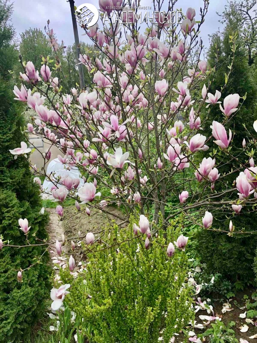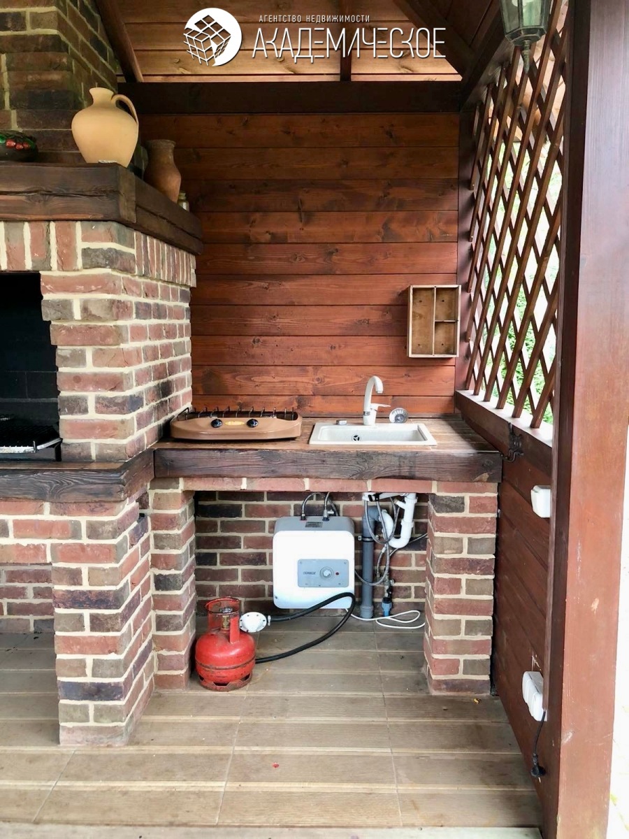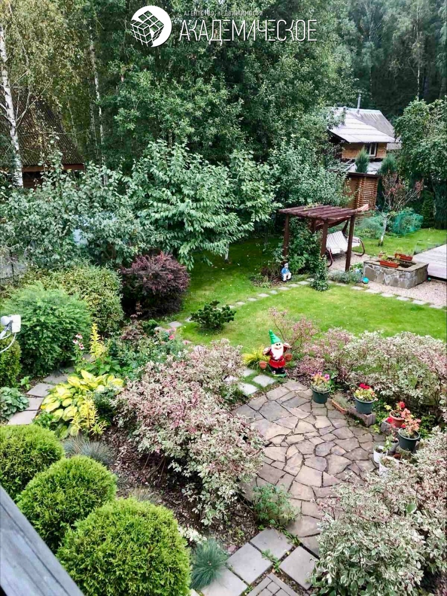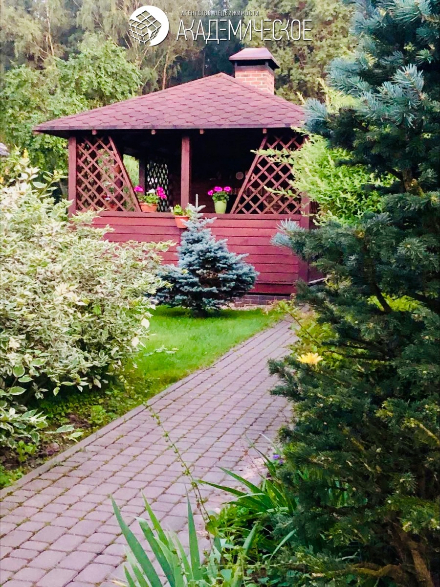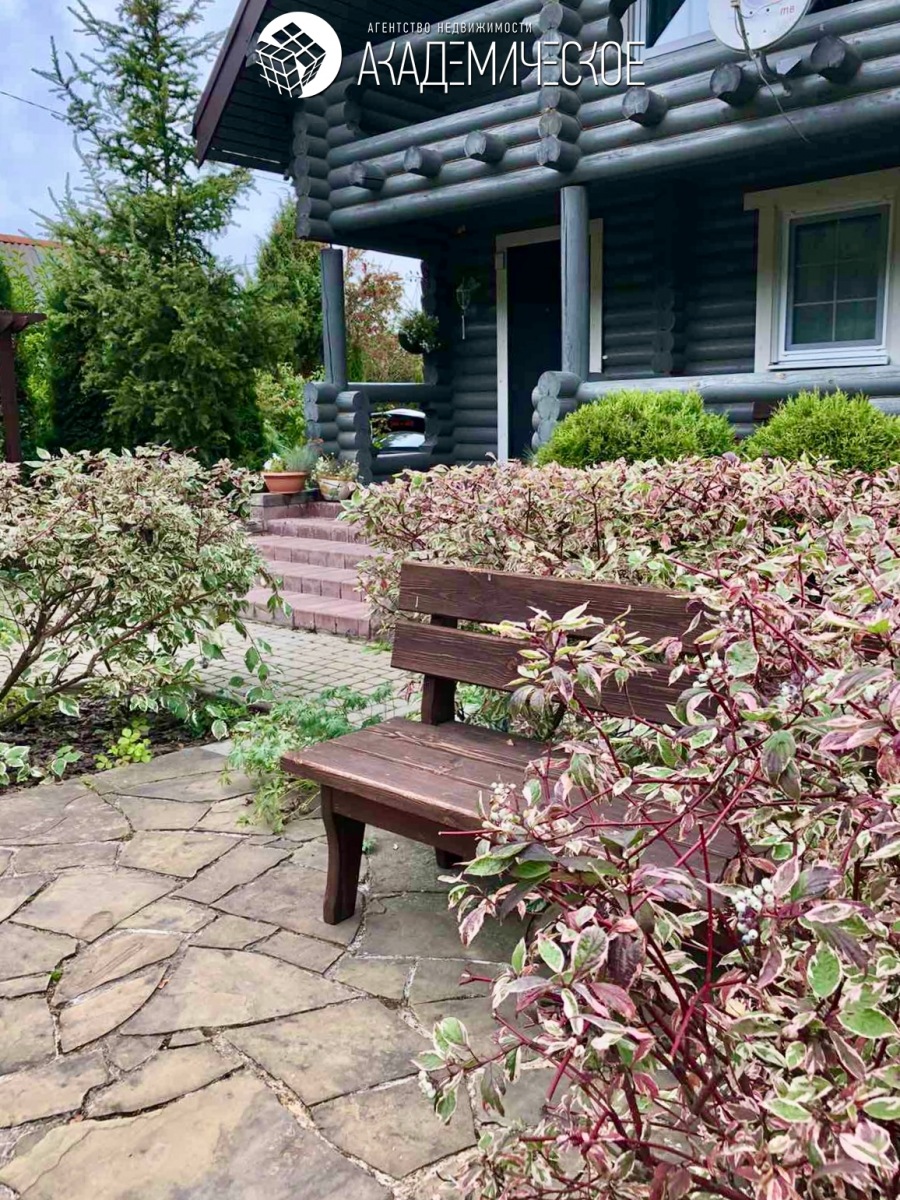 Дом деревянный из оцилиндрованного бревна с открытой лоджией на втором этаже, с которой открывается вид на ландшафтный дизайн из хвойных и лиственных растений, многообразия цветов и роз, плодовый сад из винограда, абрикосов, черешни, вишни, слив, груш, крыжовника и др. с газоном и мощеными дорожками. На участке беседка с гриль-камином и печью для казана с большим столом для дружной компании. Открытая терраса из лиственницы с двух сторон от беседки для отдыха.