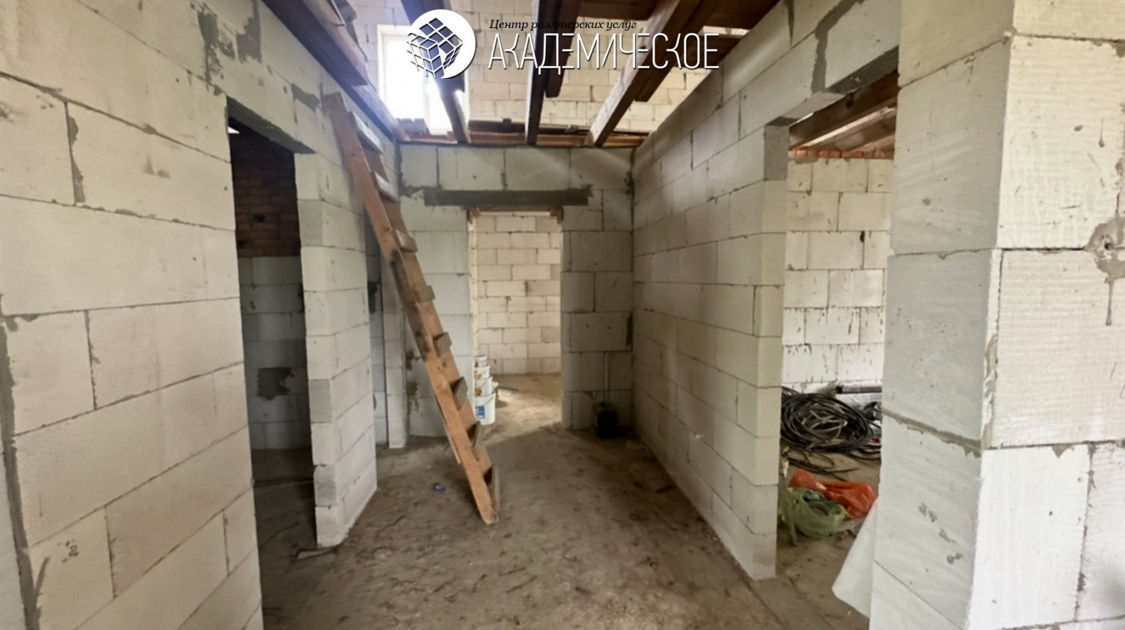 Двухэтажный законсервированный коттедж ждет продолжения стройки. Без внутренней-отделки. Силикатные блоки-400мм, отштукатурен, ПВХ-стеклопакеты, деревянные перекрытия второго этажа.