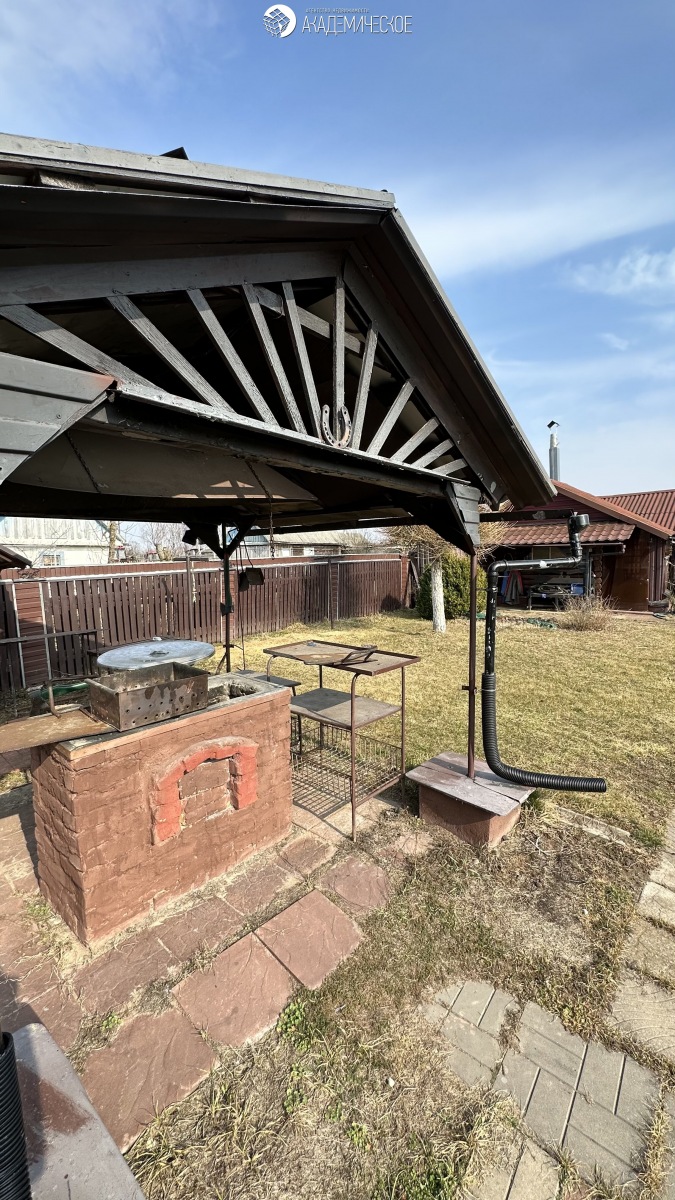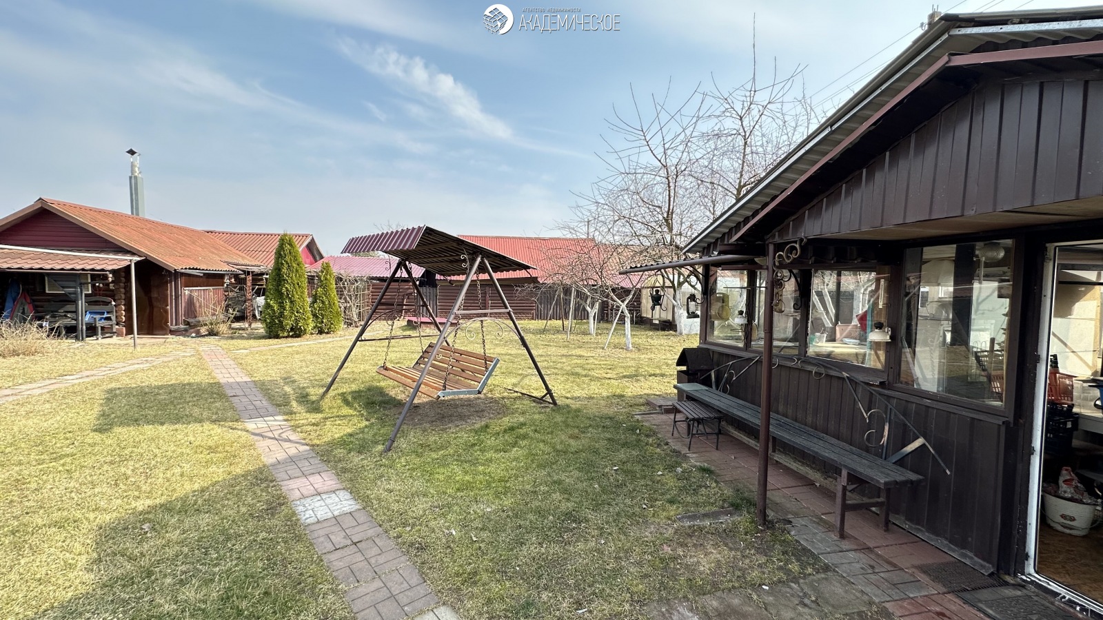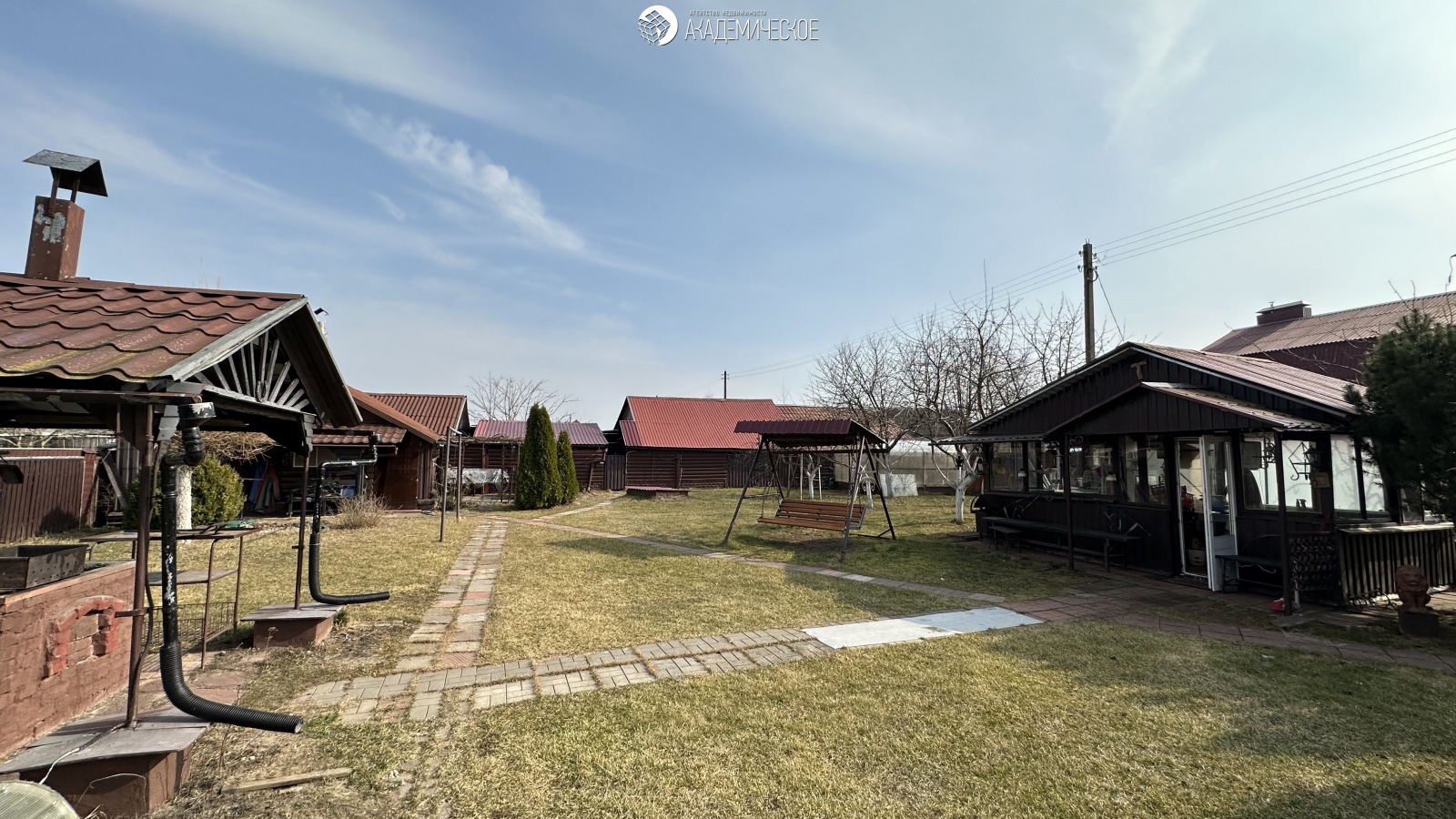 Есть теплица, зона барбекю, баня, качели, гараж, летняя кухня.