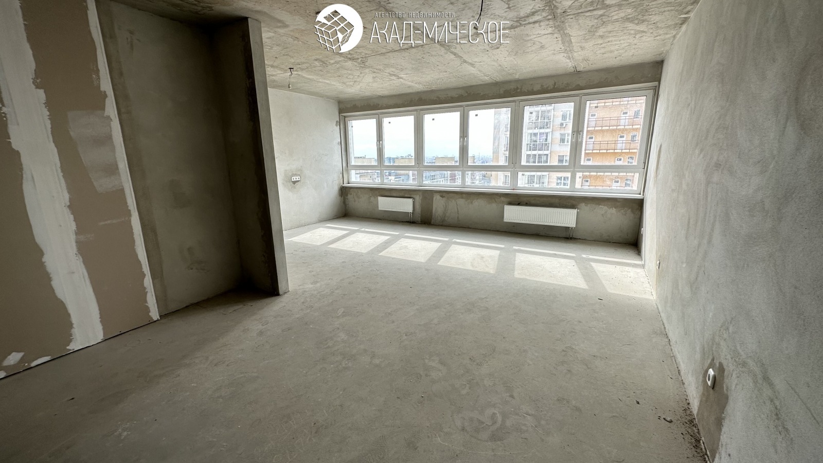 В квартире выполнена качественная черновая отделка: стяжка пола, оштукатурены стены, разведены электрика и коммуникации, установлены радиаторы с терморегуляторами, установлены приборы учета тепловой энергии, электроэнергии и воды, проведено оптоволокно.