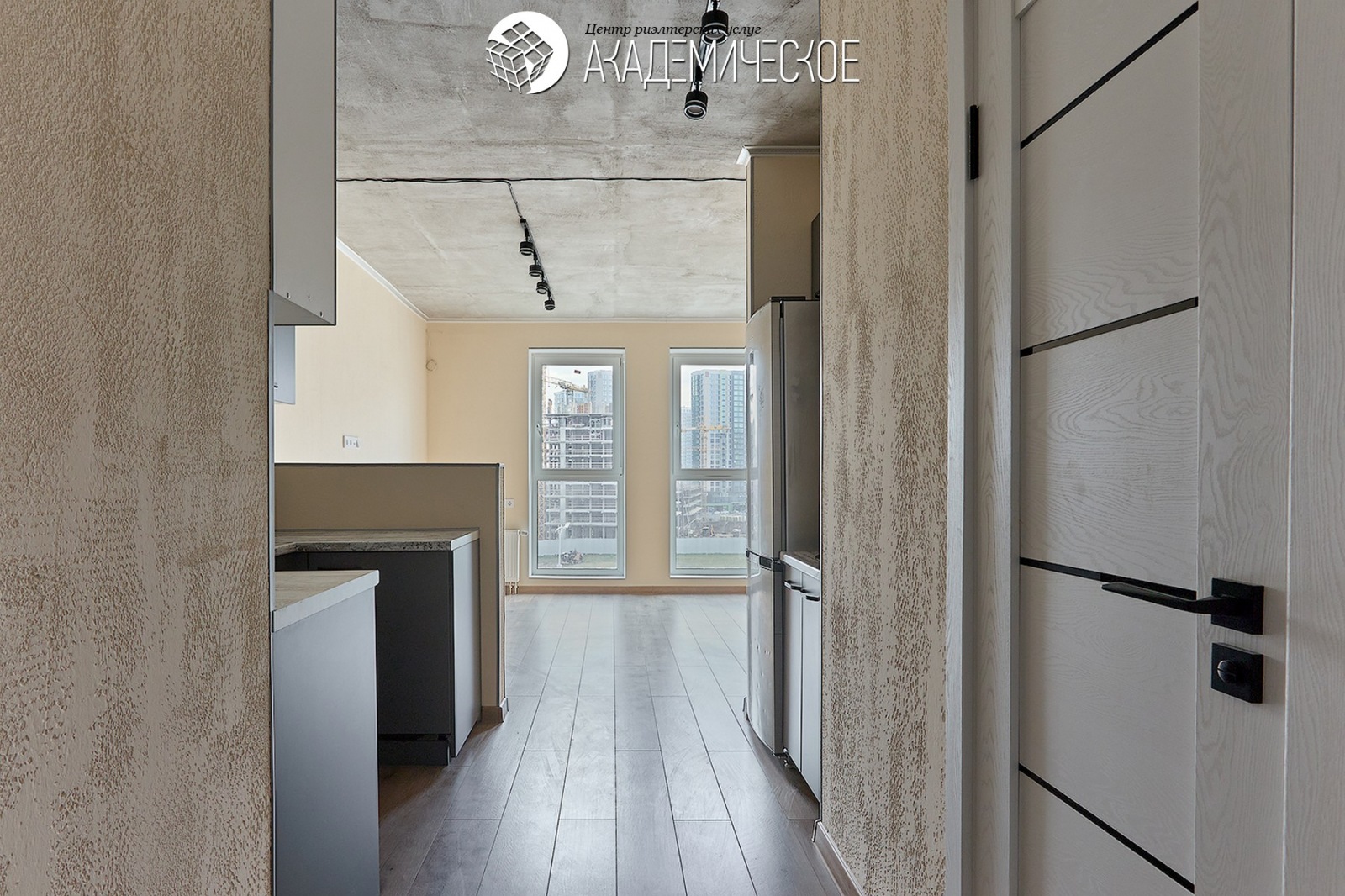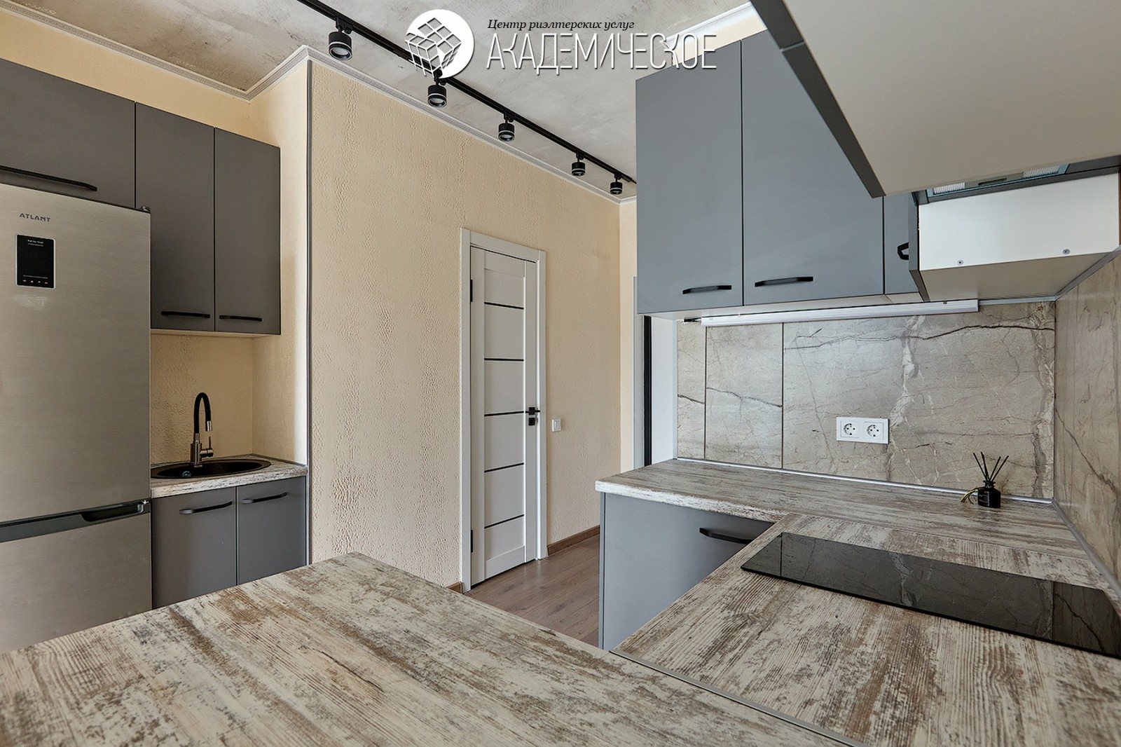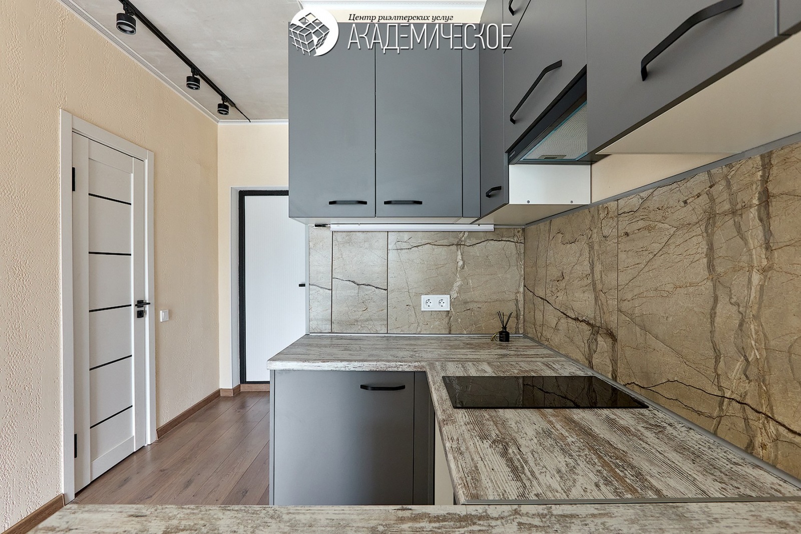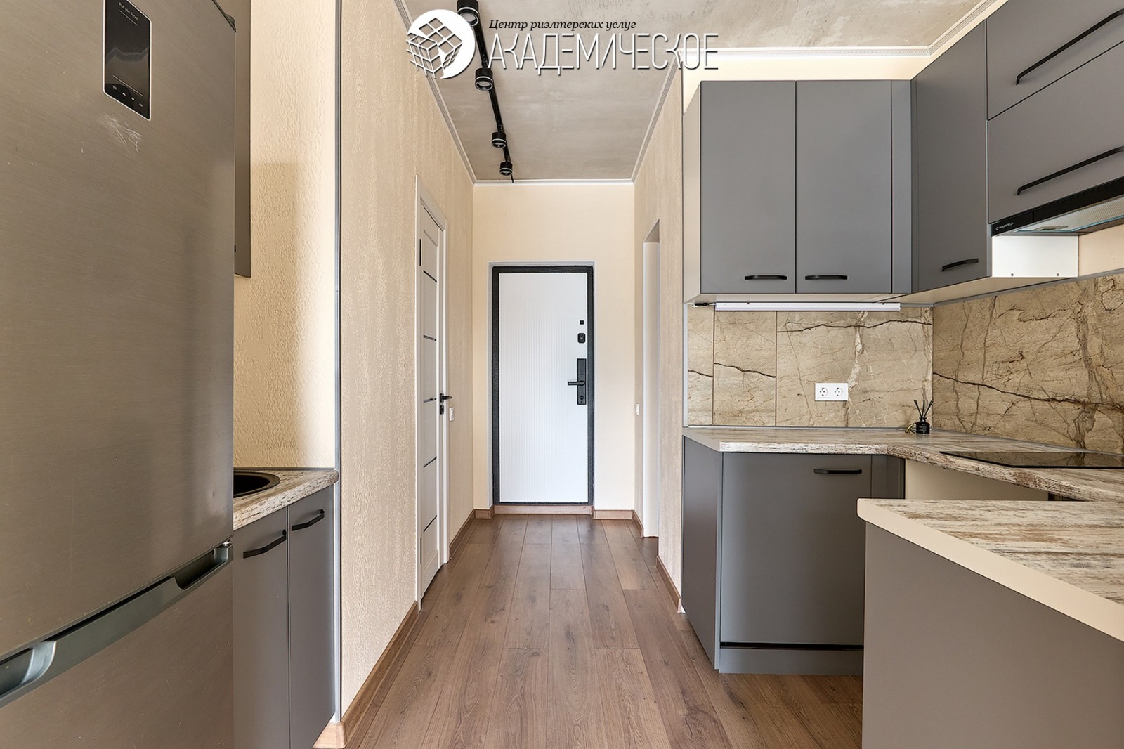 Общая площадь квартиры 32.2 м2, удобно выделены гардеробная, кухня, жилая зоны, просторный санузел. Свежий, приятный ремонт, без излишеств. Стены, потолок – декоративная штукатурка, пол – ламинат хорошего класса, санузел – керамогранит, из техники – варочная панель, вытяжка, холодильник, стиральная машина.